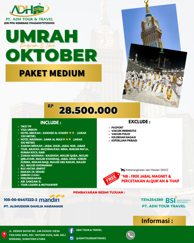 UMROH OKTOBER PAKET MEDIUM FREE THAIF