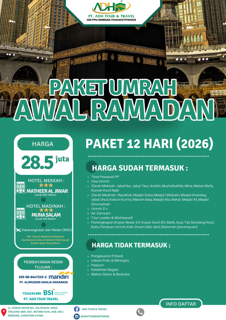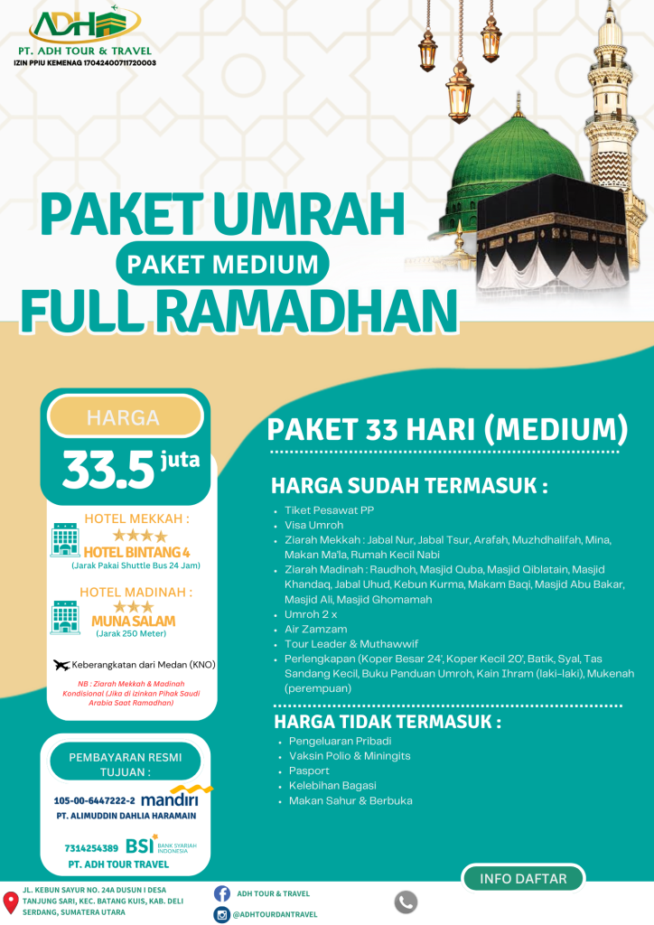 PT. ADH Tour & Travel Juga Menyediakan Layanan Umroh dan Haji di Antara Nya :